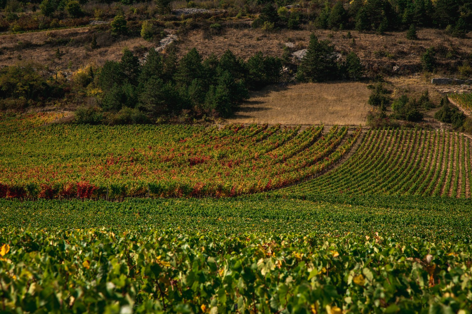 The Burgundy vineyard spreads out its 72,896 acres (29,500 ha), including 61,776 acres (25,000 ha) in AOC (Controlled Designation of Origin), over four departments: Yonne, Côte-d'Or, Saône-et-Loire, and Rhône. The clay-limestone soils from the Jurassic favor the terroirs of the Burgundian vineyard up to Mâcon. Further south, in Beaujolais, are the granite foothills of the Massif Central. Depending on their exposure, the wines take on different tastes and colors that make up the richness of their terroir and the remarkable diversity of Burgundy wines.