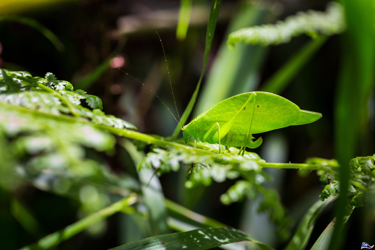 To avoid attracting attention of their predators, some animals have developed mechanisms which allow them to blend into their environment. Some have become camouflage specialists. The green leaf katydid is arboreal so it mimics the color of the tropical forest's leaves on which it lives, but also their vein pattern called nervation.