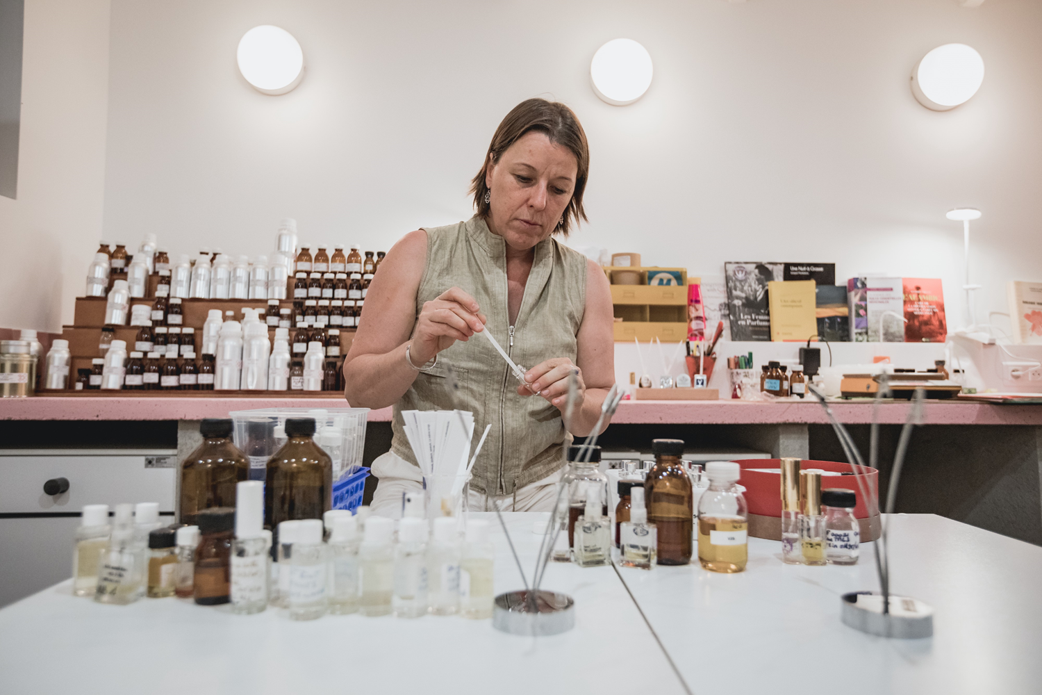 During her career in Belgium, Paris, and Grasse, Laurence Fanuel has created fragrances of all sorts, specializing in functional perfumery for everyday products (interior deodorants, softeners, cleaners, etc.). She also has collaborated with artists on the odorous aspect of their work and reflected on the role of olfaction in sensations and emotions. Every morning, Laurence Fanuel goes to her workshop-laboratory in Grasse in search of new blends.