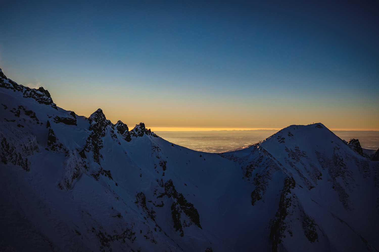 The snow cover of a mountain range can be temporary or permanent through the year, depending on local altitude, latitude, and climate. When permanent, the snow is said eternal, meaning all or part of the snow cover transforms into a snowfield then a glacier. Otherwise, as on the summit ridge of the Puy de Sancy, temporary snow disappears either by melting when the temperature rises above 32°F (0°C) or by sublimation (transformation into gas) at temperatures below the melting point.