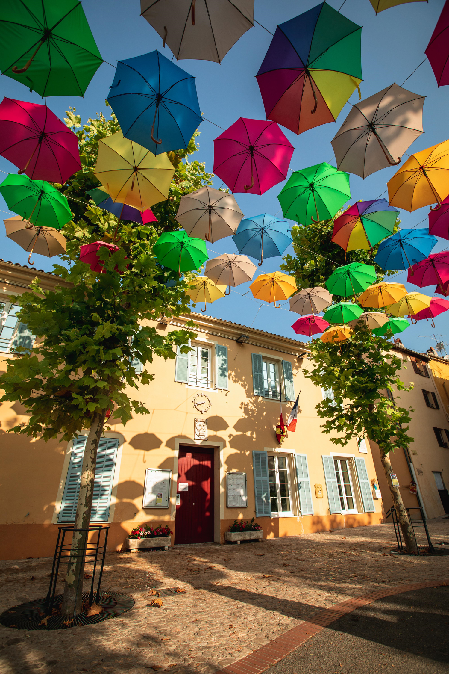 One after another, cities around the globe give in to the frenzy of the Umbrella Sky Projects imagined by Portuguese artist Patricia Cunha. This ephemeral yet global project has become viral thanks to the enthusiasm of Internet users and social networks. It has already embellished Arles, Carcassonne, Toulouse, Béziers, Aix-en-Provence, Paris, Antibes, or Castellar in France as well as Tokyo, Seoul, Saint Petersburg, or Pensacola.