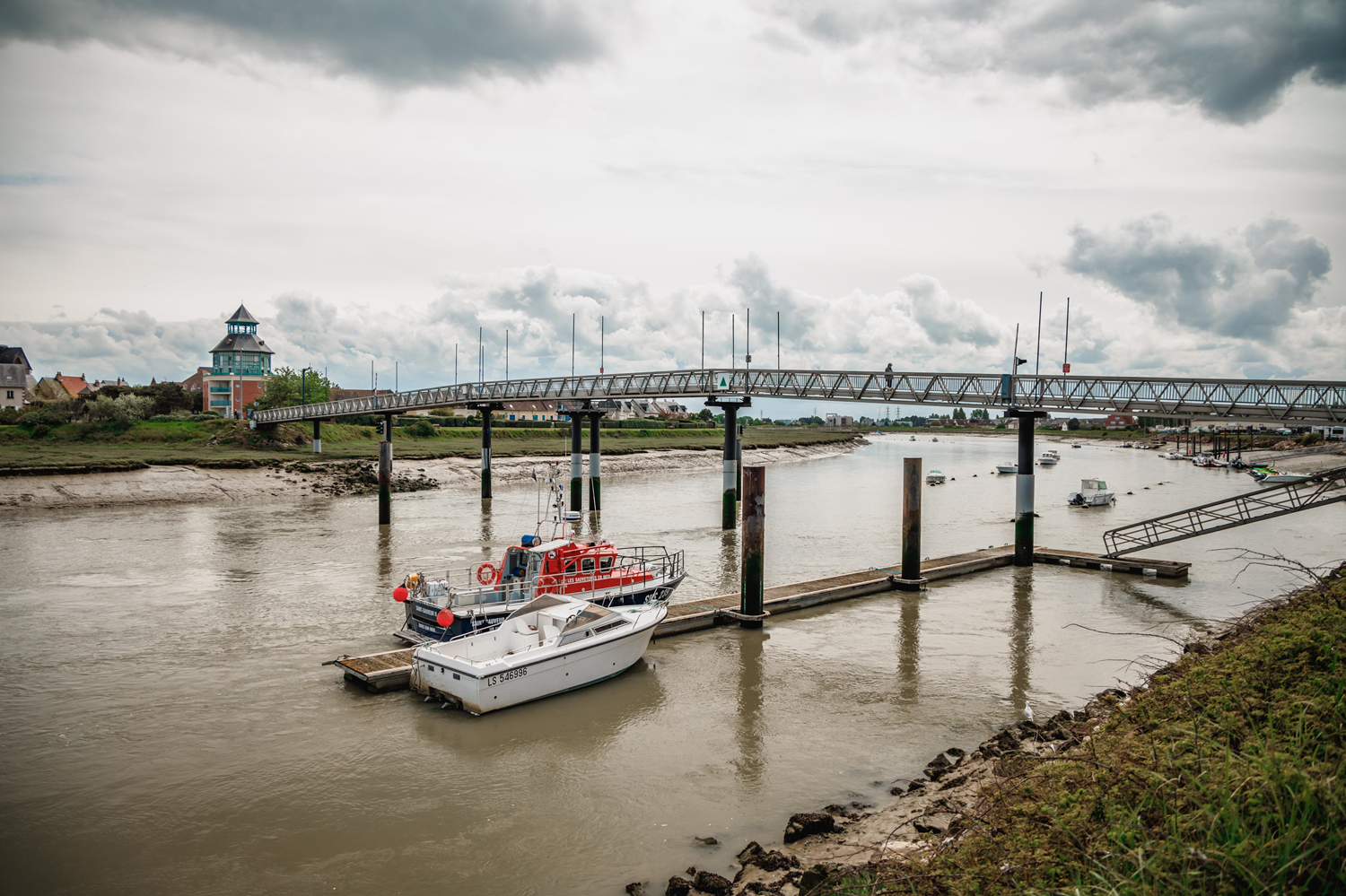 Since the creation of Port Guillaume in Dives-sur-Mer in 1991, a metal footbridge has been used to reach Cabourg without taking the Brigade-Piron bridge. Some 426 ft (130 m) in length, it is entirely pedestrian, and only bicycles can take it at walking speed. Up to 2,000 pedestrians cross the bridge during summer to reach Cabourg's beach.
