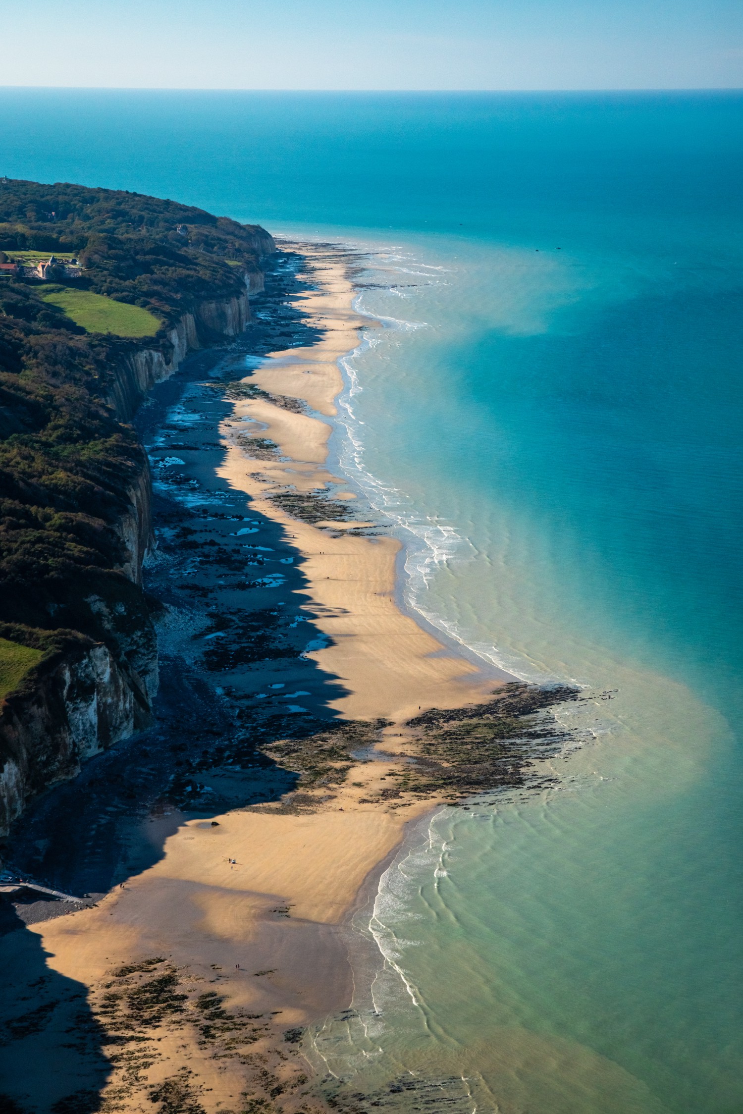 At Varengeville-sur-Mer, near Dieppe in the Seine-Maritime department, the GR21 hiking trail zigzags down to the valleuse (dip opening onto the sea) of Moustiers over 328 ft (100 m). Unlike other towns on the Côte d'Albâtre (Alabaster Coast), the locality has remained on the heights of the cliffs, and the beaches below it have remained particularly wild. The absence of resort structures has left them as they have always been, and the area inspired poets and painters like Claude Monet.