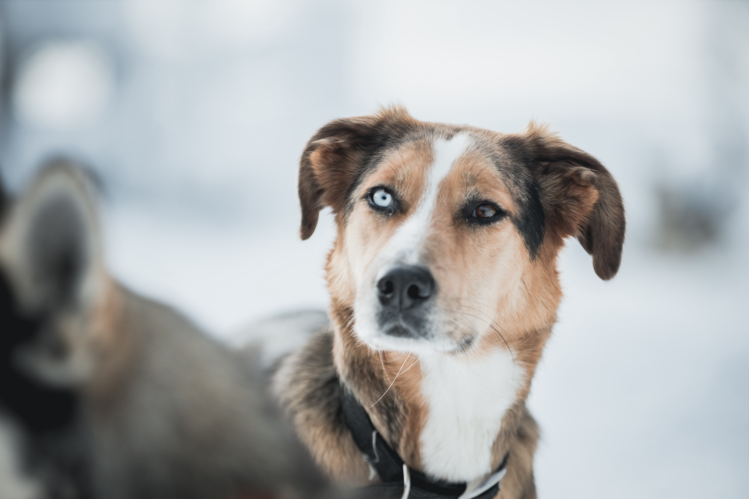 The term musher comes from walking, a term modified when Canada became British in the 18th century. Distant descendants of Arctic wolves, domesticated by Nordic tribes, huskies have an insatiable hunting instinct that pushes them to run whenever they can. In Septmoncel les Molunes, Pierre Daniel takes them out every day as a husky that does not run can develop depression and aggressivity. The breed can resist temperatures down to -49° F (-45°C) as its legs are protected by a mass of fat inside the pads, where the blood is more abundant than in other species. It also has three layers of different hairs.