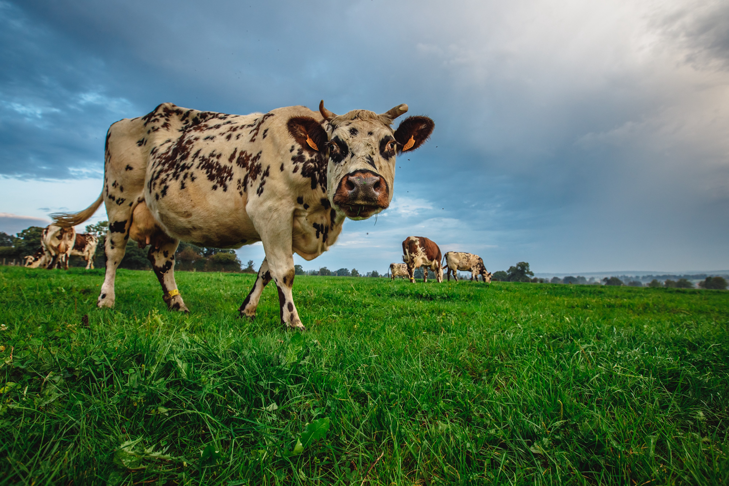 Camembert, cream, and butter would not be emblems of Normandy without the milk of Norman cows. The breed may have landed from a Viking longship during the Middle Ages, but it has officially existed since 1883 when it was mentioned in the Herd Book of cattle breeds. A crossing with Augeronnes lengthened Norman cows' silhouette, and the Cauchoises brought them signature udders and a milk renowned throughout the world.