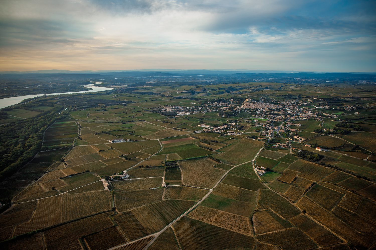 The village of Châteauneuf-du-Pape is renowned worldwide for its AOC wines made from thirteen grape varieties. The second most important AOC after Saint-Émilion, the Châteauneuf-du-Pape designation covers 4,890 acres (1,979 ha), i.e. 79.9% of the municipal territory, as well as part of the neighboring municipalities of Orange, Bédarrides, Sorgues, and Courthézon for a total area of 8,155 acres (3,300 ha) of vines exploited by three hundred winegrowers.