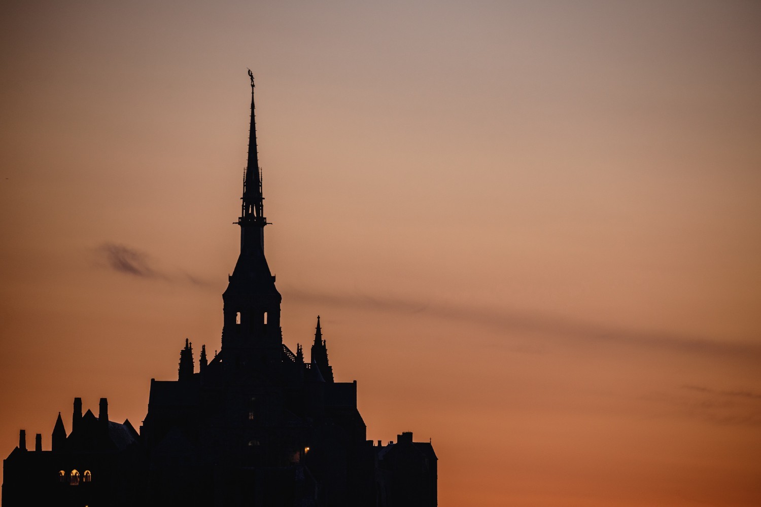 The statue of St Michael slaying the dragon is 156 metres above sea level and almost looks as if it will fly away. It is 4.5 metres high and dates from 1897. It was created by the animal sculptor Emmanuel Frémiet. In order to be easily installed, it is made of hammered and gilded copper, a much lighter metal than bronze. It was completely refurbished in 2016. The statue also serves as a lightning rod. In the Middle Ages, people lived in expectation and fear of the afterlife: venerating St Michael the Archangel, guide and saviour of souls seeking to follow the right path, was soothing.