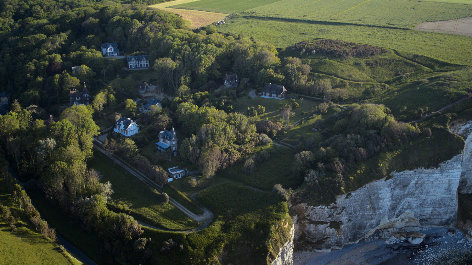 A discreet valley, hidden by the forest of Les Hogues, descends to the pebble beach of Vaucottes, backed by the cliff of the Roche aux Anglais. On the green plateau overlooking it, luxurious Anglo-Saxon villas bear witness to the early 20th-century craze for sea bathing and seaside stays. Among them, the Villa Marie-Louise is a Neo-Gothic coastal house from the end of the 19th century. The architect Camille Albert built it for the writer Maurice Leblanc and his first wife, Marie Lalanne.
