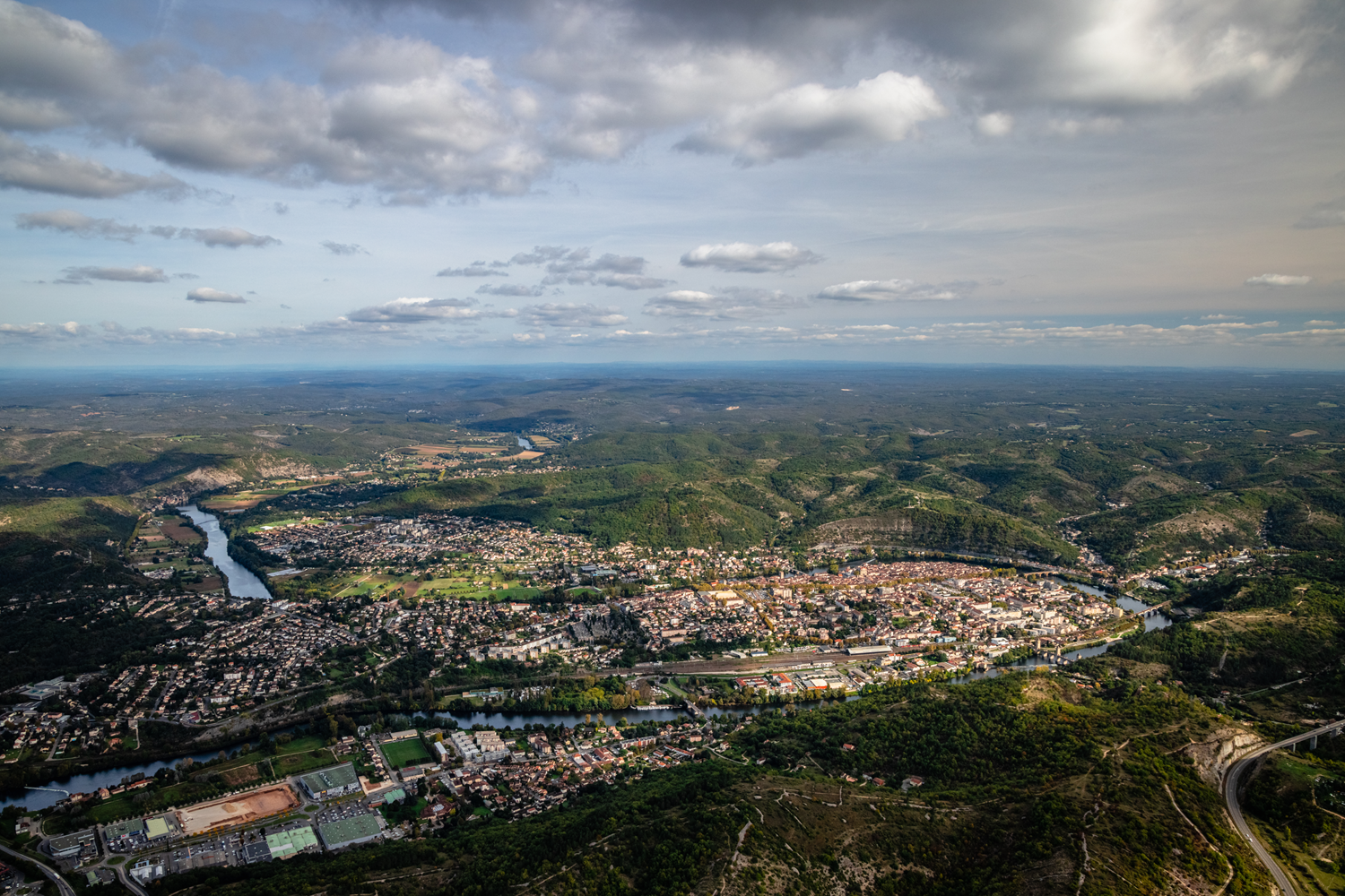 Cahors is enclosed in a loop of the Lot valley, in the hollow of one of the meanders of the river. The city bearing the Pays d'Art et d'Histoire (Country of Art and History) label dates from the Roman era. It later became a major European financial and commercial center in the Middle Ages. The heart of Cahors is renowned for its marriage between red brick, gray limestone, and ocher sandstone. The medieval streets, numerous small squares, and 26 secret gardens make Cahors a sought-after site for visiting and discovering a typically southern city.