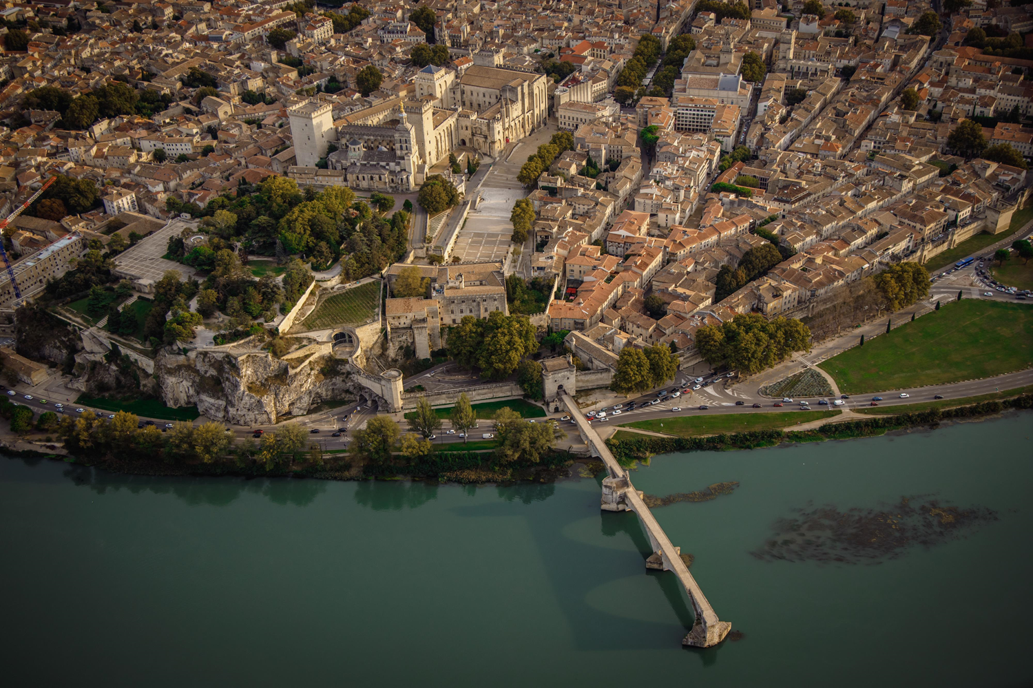 Avignon is among the rare French cities to have preserved the entirety of its ramparts. Fourteen thousand one hundred and seven feet (4,300 m) long, flanked by thirty-nine towers and pierced by sixteen gates, they surround the old part of the city. The current ramparts were erected in the 14th and 15th centuries to protect the papal city from the highwaymen and free companies that descended the Rhône Valley and shelter it from the floods of the river. They succeeded the various fortifications of Avignon erected since late Antiquity.