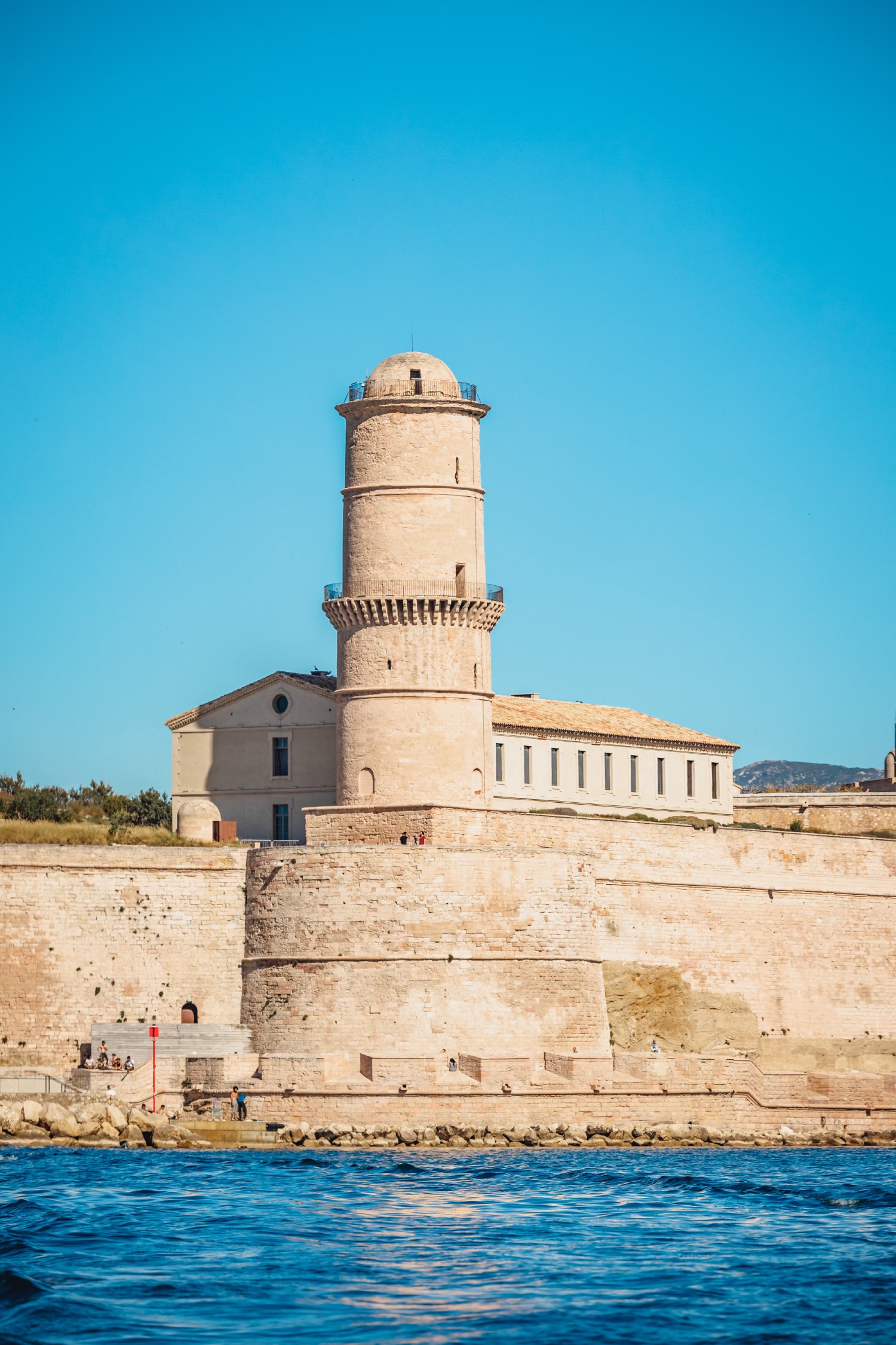The Tour du Fanal or Tour Ronde (Round Tower) of Fort Saint-Jean was built in the middle of the 17th century (1644). At that time, Marseille shipowners wanted to fortify the fort and the entrance to the Vieux-Port with a watchtower sufficiently high to be visible to merchant ships more than 12 miles (20 km) from the city's harbor. Almost 100 ft (30 m) high, the Tour du Fanal was built two centuries after the Tour du Roi René or Tour Carrée (Square Tower) of the same fort.