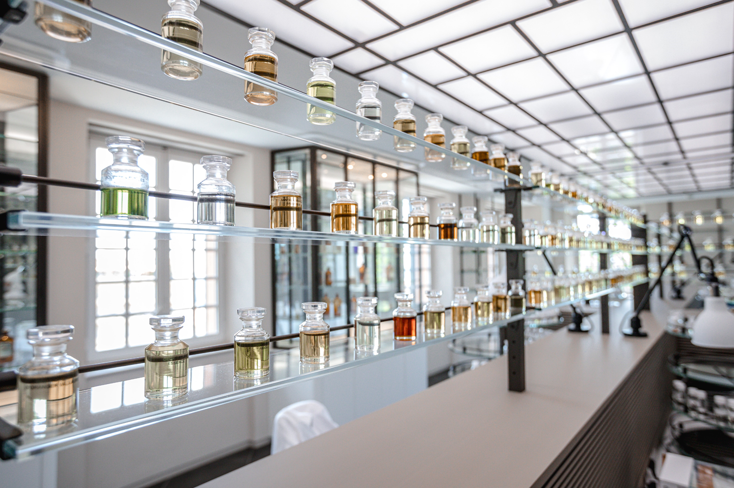 Working in the setting of the Fontaines Parfumées in Grasse constituted a return to his roots for the master perfumer Jacques Cavallier Belletrud. He set up his space for reflection on the first floor of the estate's bastide. The ideas arising there are concretized on the second floor in a bright laboratory with perfectly aligned bottles.