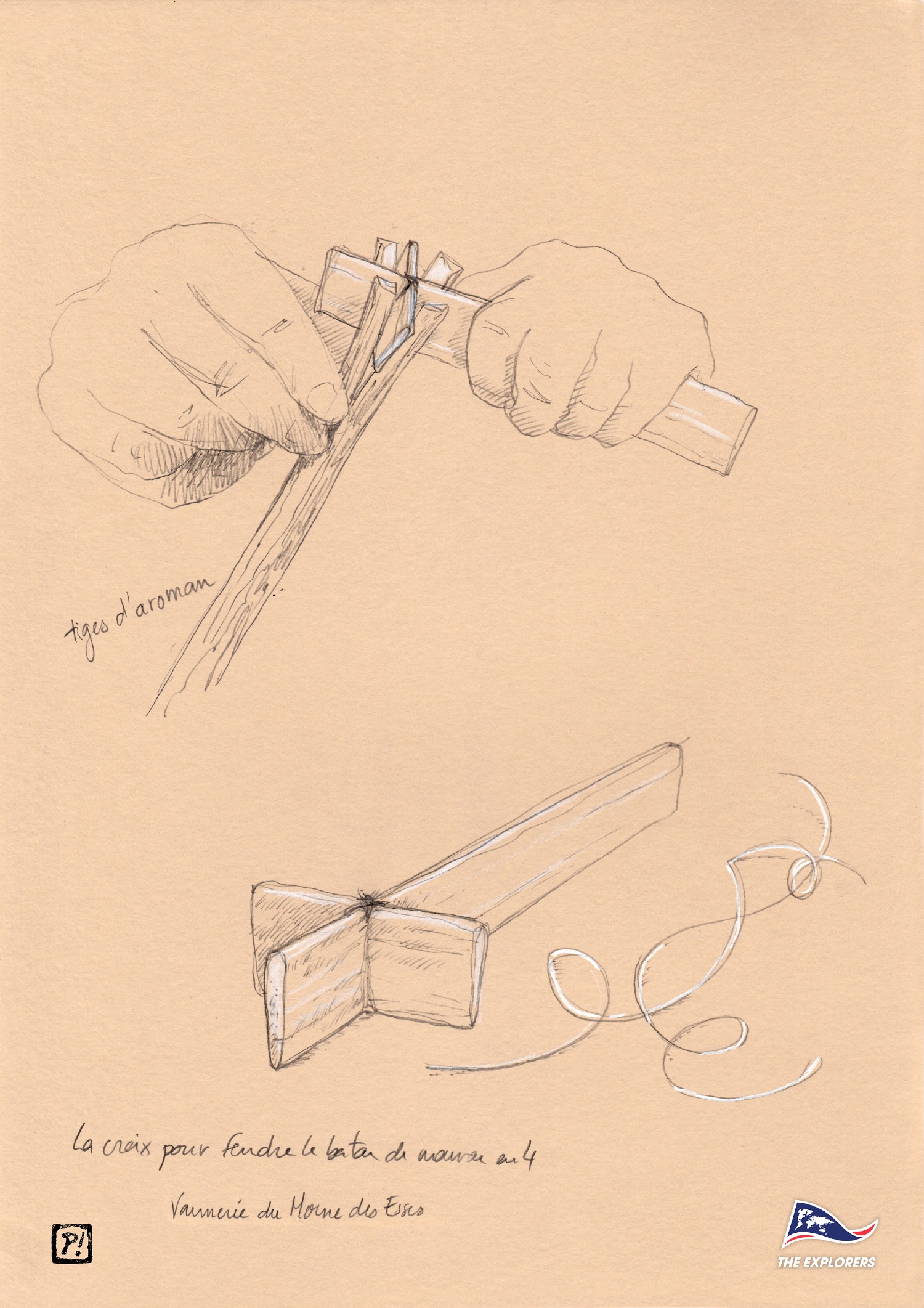 Petit outil en bois fait main pour fendre en 4 les tiges de Cachibou qui seront tressées.