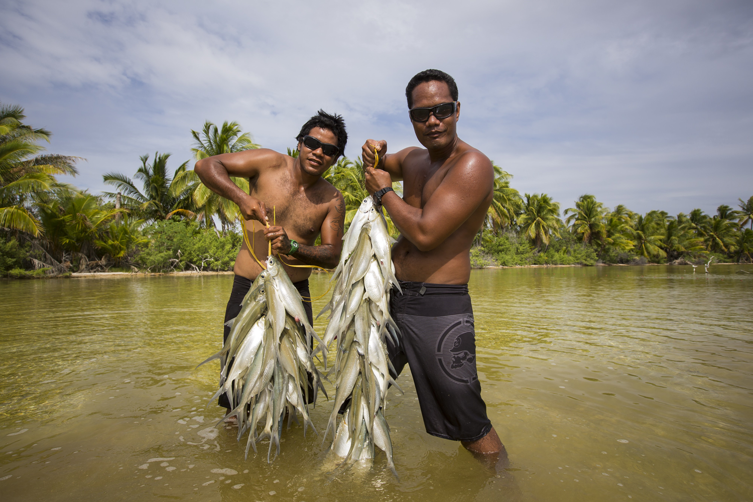 Niau is a thoroughly closed atoll. Although its waters are brackish a small fish, the pati manage to live there. It has become the main resource to neighboring populations. In order to capture it, fishers are using a net.