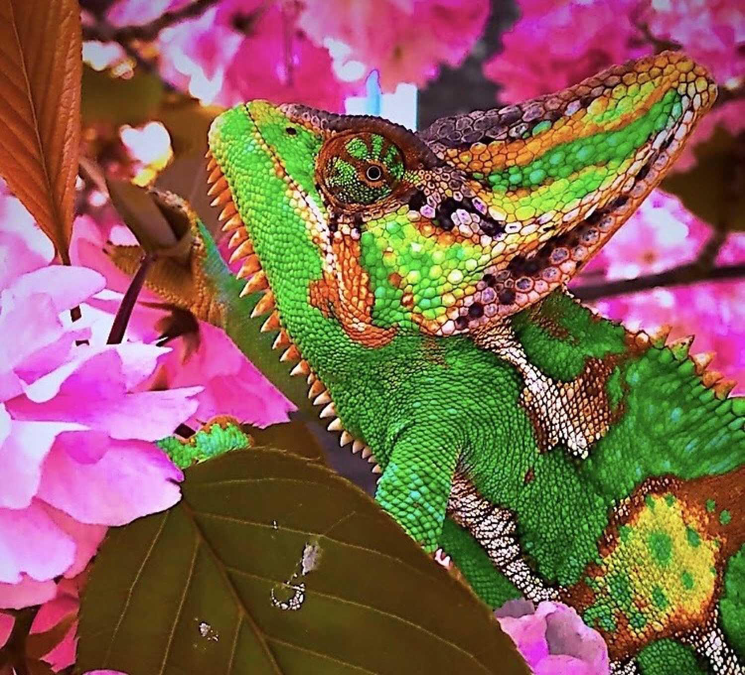 The veiled chameleon is able to alter its colour in different situations for camouflage, aggression, stress, mating and more