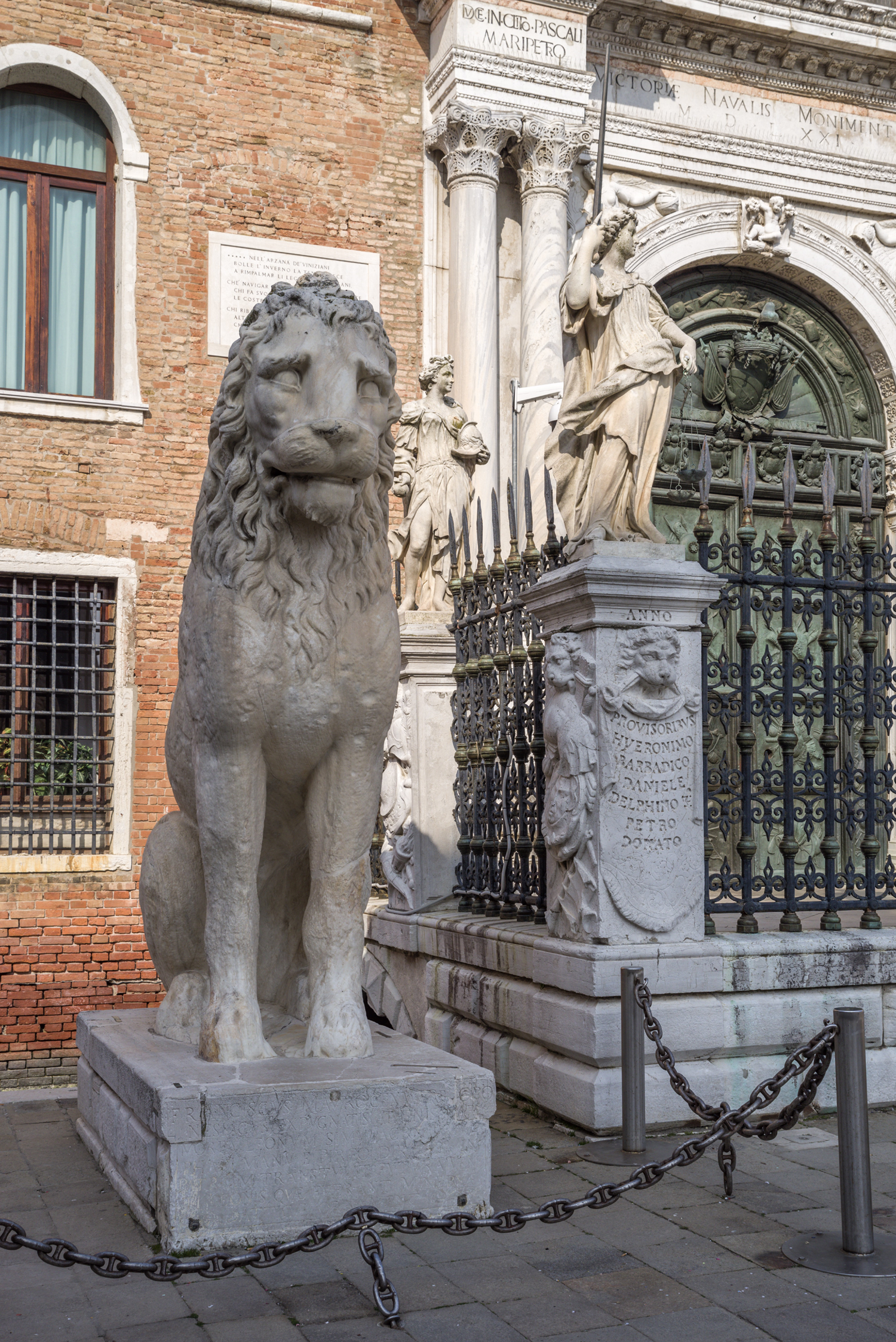 Statue d'un des quatres lion devant la porte terrestre de l'arsenal. Ce lion est un butin de guerre (1692) provenant du port grec du Pirée.