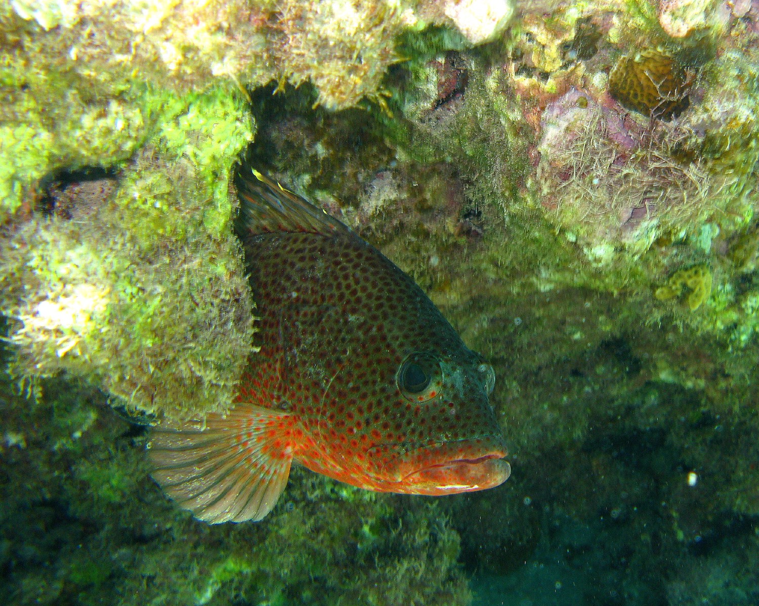 Avec le Coné, figure parmi les plus petits des mérous, il a la silhouette caractéristique du bar, mais se présente sous une variété de colorations moirées, dur vert pâle-bronze à points bruns, blanc-rose avec points rouges, mais aussi bronze uni avec taches rouges.