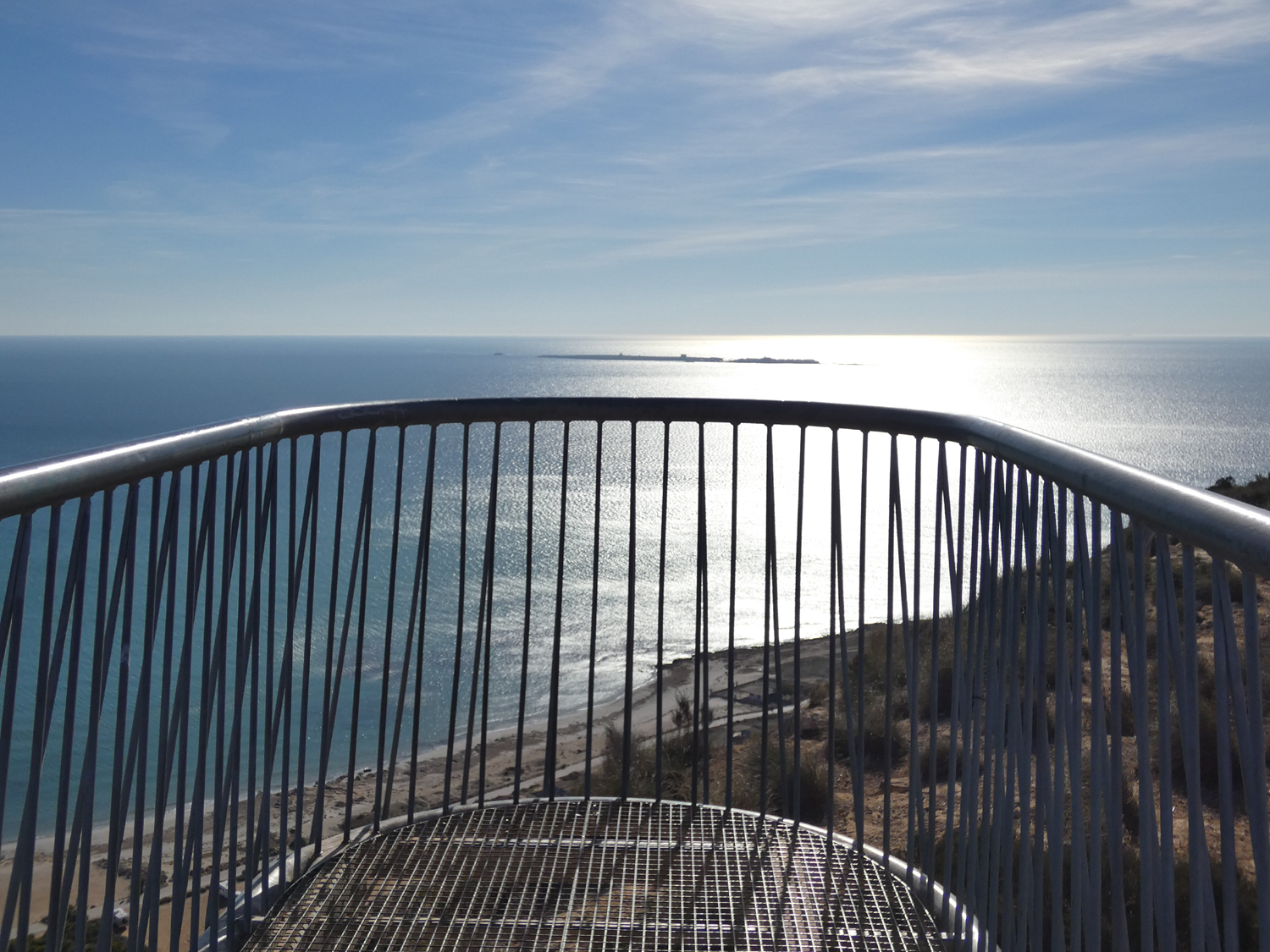 En tal lugar y al borde del acantilado hay desplegadas dos pasarelas metálicas, una de ellas volada, y que nos permite ver a la izquierda hasta la ciudad de Benidorm, y a la derecha hasta la Mata. En frente se encuentra la Isla de Tabarca, hoy un centro disfrute local e internacional, con su parque natural marino reflejo de lo mejor de los fondos mediterráneos.