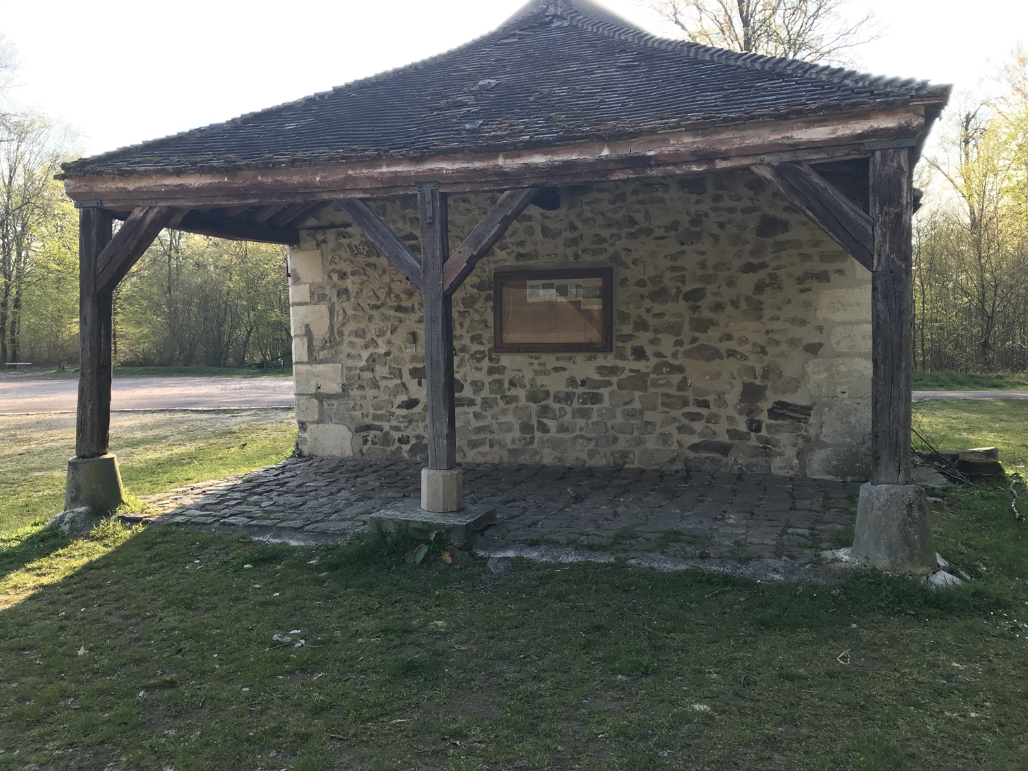 Au milieu d’une clairière avec tables de pique-nique, cette baraque est une halte appréciée des cavaliers. Des anneaux sont prévus à proximité pour attacher les chevaux.