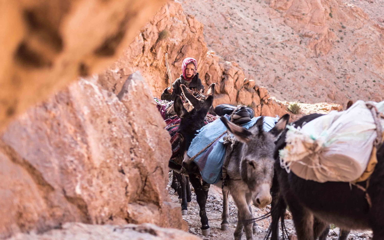 Girl working with her mother, making the bond between her village and Tinghir in order to sell their carpets.
