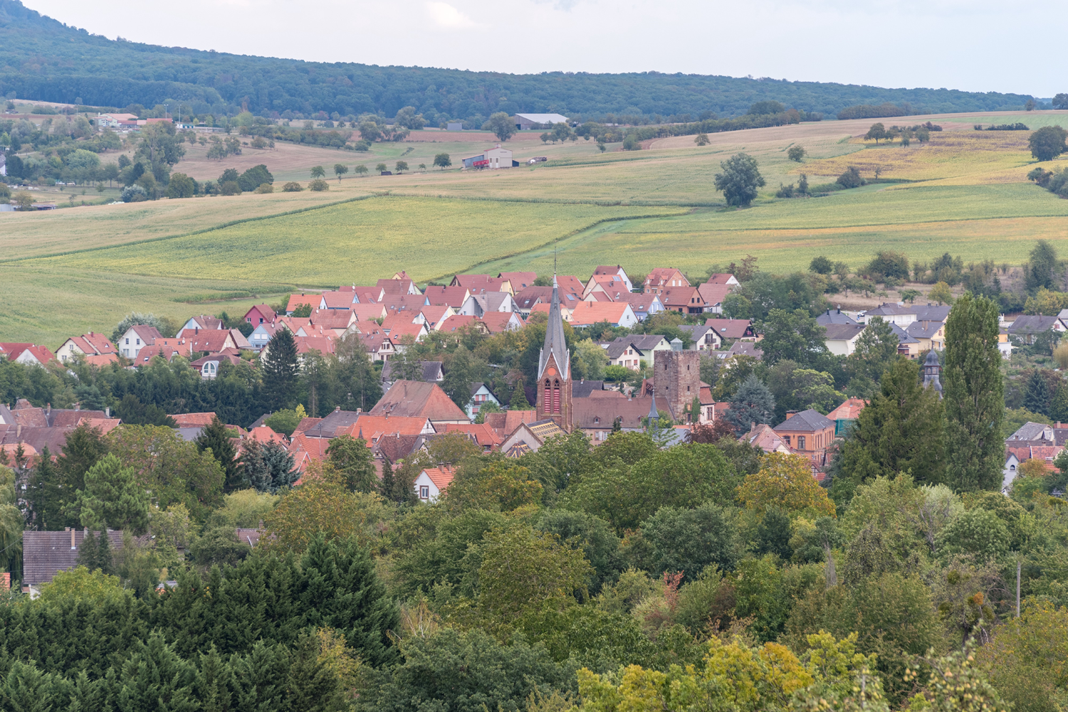 Bataille de Frœschwiller-Wœrth (6 août 1870) - Vue depuis le sommet de la tour des artilleurs de Hesse. Le village de Woerth.