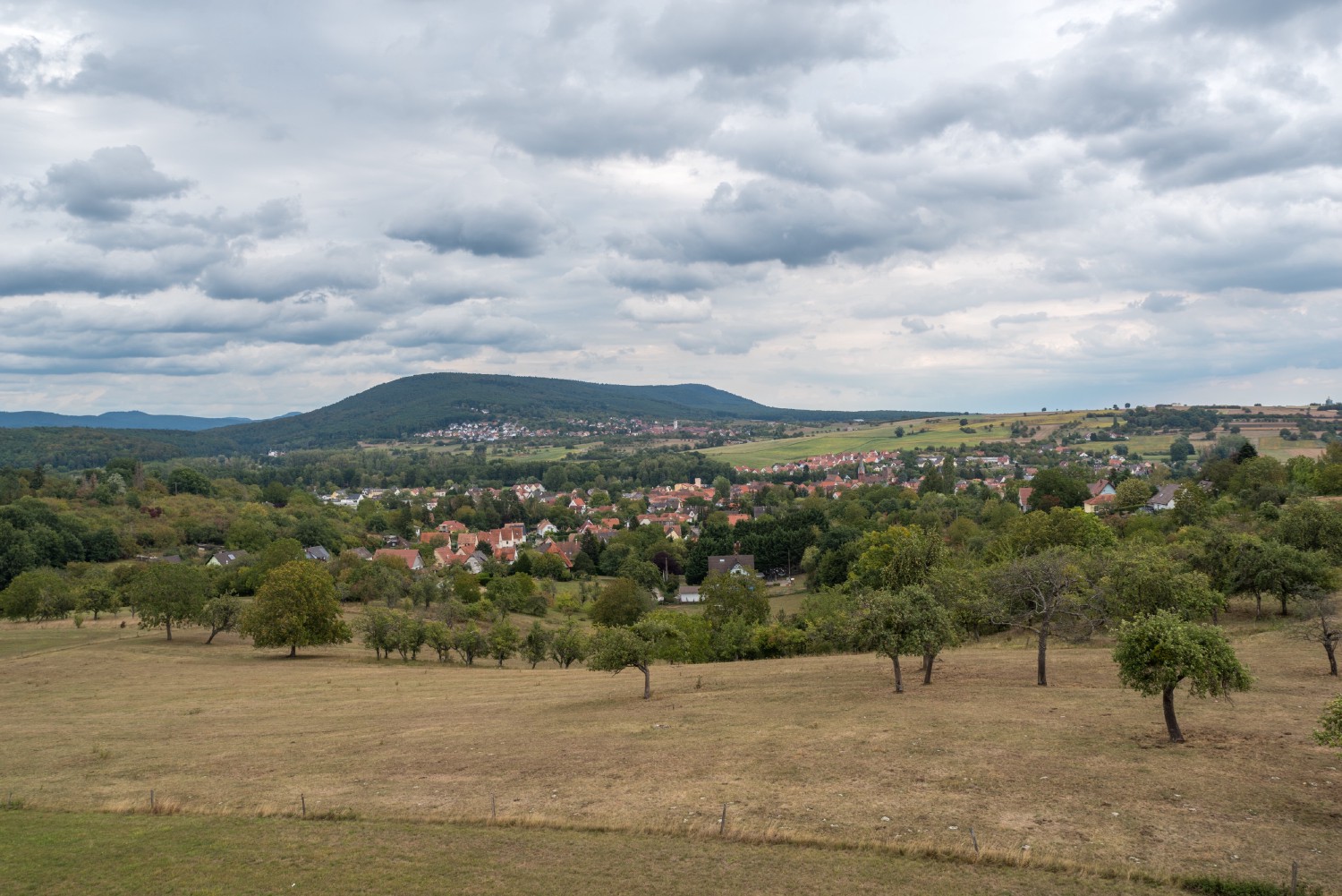 Bataille de Frœschwiller-Wœrth (6 août 1870) - Vue depuis le sommet de la tour des artilleurs de Hesse. Les villages de Woerth et de Gœrsdorf.