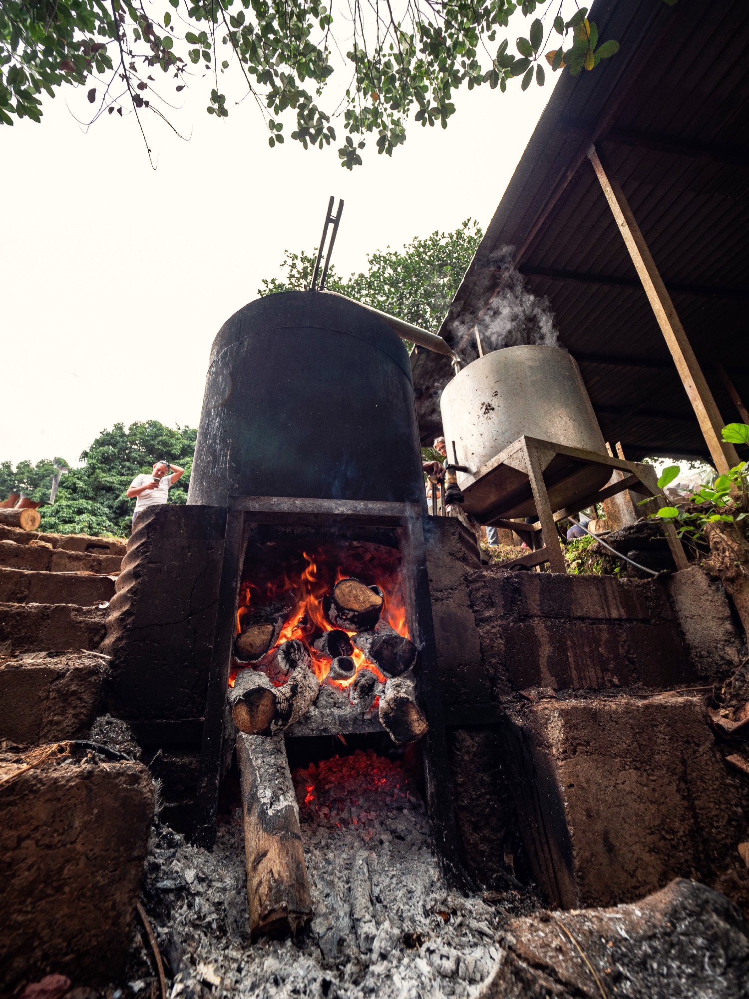 Thé alambic is put at temperature using coconut tree burning in the artisanal way