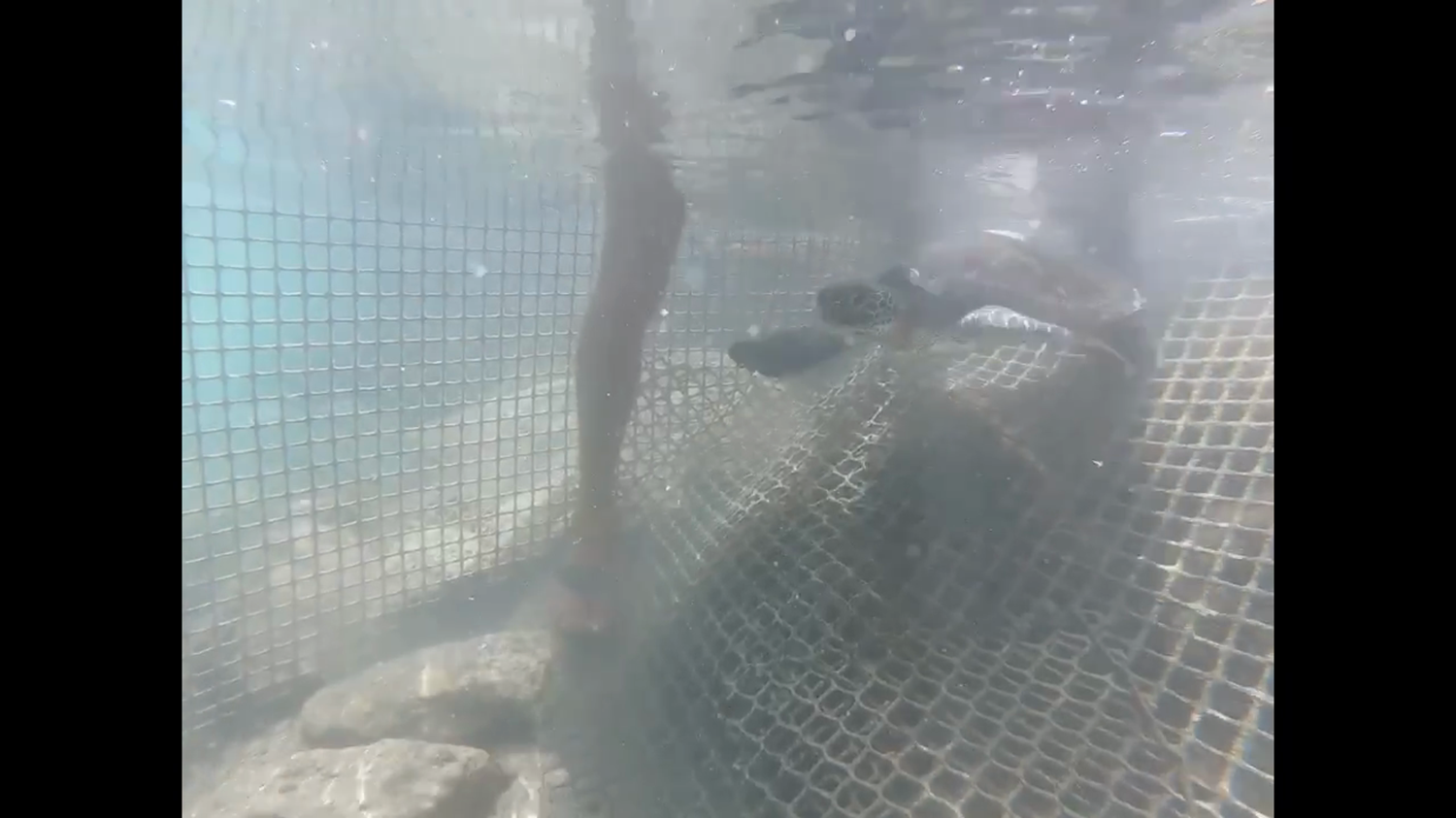 Temeio, a subadult green turtle which arrived on August, 2nd 2019 after a speargun arrow, is doing much better and could soon be released.