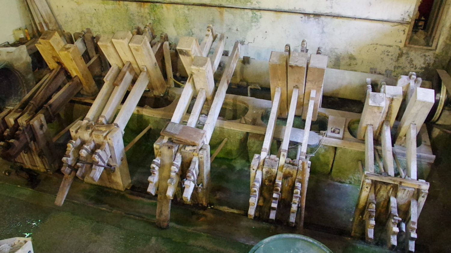 Les maillets du moulin à papier.