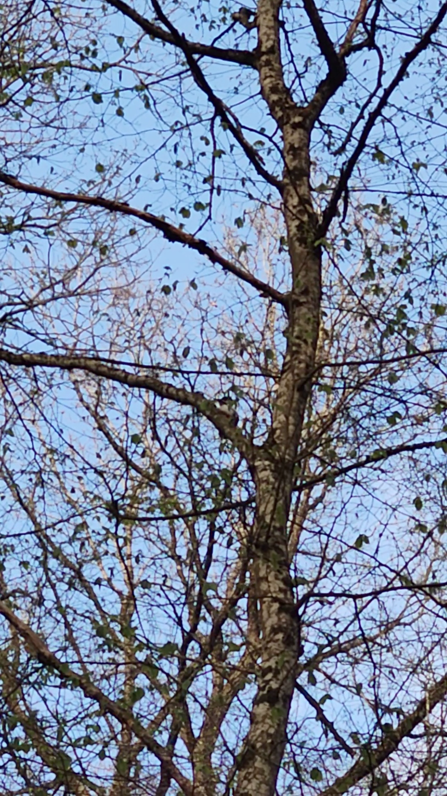 Un petit pic épeiche qui chassait sous l'écorce d'un bouleau