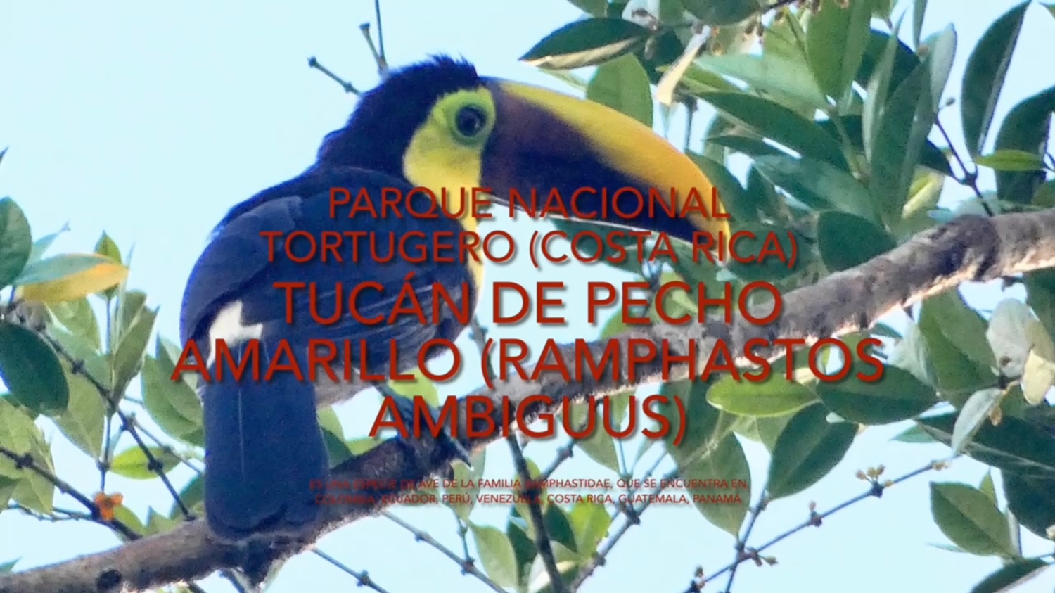 El tucán de pecho amarillo es un ave de plumaje negro contrastado con el amarillo intenso del cuello y parte del pecho; posee un gran pico de 16 cm de largo. ... Son de cuerpo negro; en el macho el pico se presenta de mayor tamaño y su cuello y pecho son de color amarillo brillante. Se alimentan de frutas, invertebrados y reptiles pequeños.